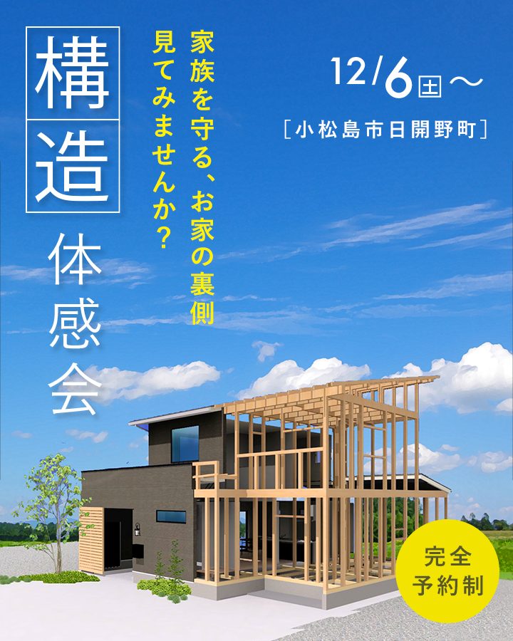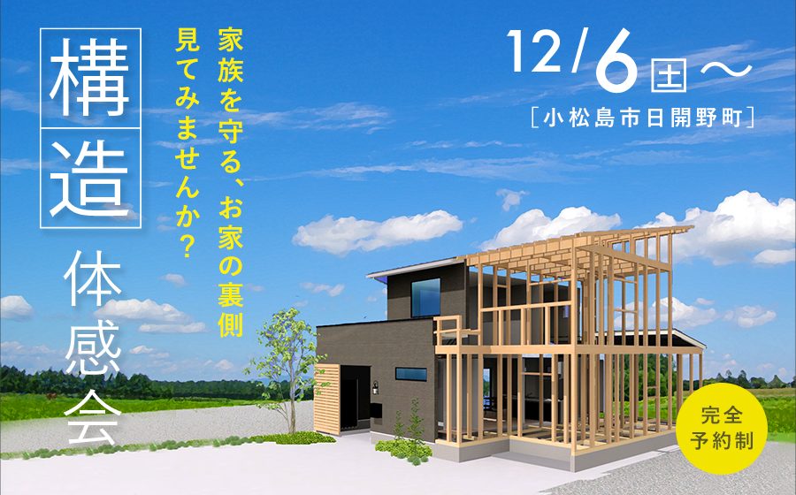 12月6日(土)〜、建築途中のお家をお借りして構造体感会を開催いたします。